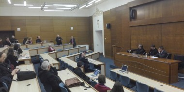Il 24 aprile nell'Aula del Senato Accademico della nostra Università è stato presentato il libro in omaggio del prof. Petar Vrankić, Begegnung der Kirche in Ost und West im Spiegel der synodalen Strukturen (L’incontro della Chiesa di Oriente ed Occidente secondo la sua struttura sinodale), contenente 20 contributi di colleghi, allievi ed amici, che rispecchiano la sua attività di docente e studioso. Il prof. Vrankić già professore dell’Università di Augsburg è stato professore della nostra Università dal 1998 al 2004.