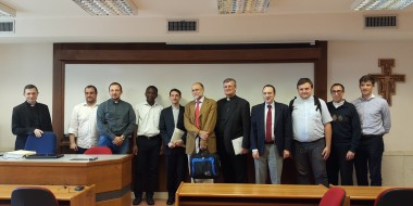 Alcuni professori e studenti del Dipartimento con P. Rocco Ronzani OSA ed Emanuele Atzori, relatori al Seminario sulla Canonizzazione di Santa Rita da Cascia.